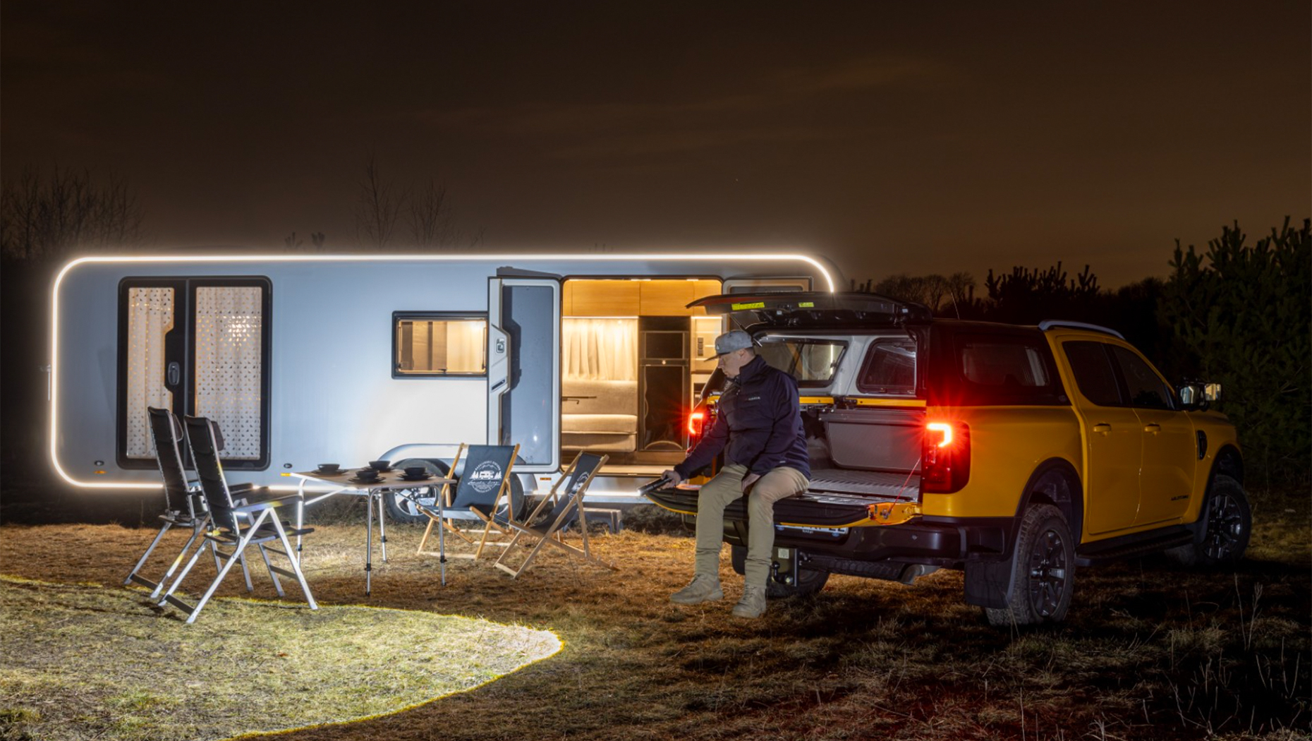 Das Herzstück dieser Kombination ist der Ford Ranger PHEV. Dieser Pickup ist weit mehr als ein gewöhnliches Zugfahrzeug, er ist ein mobiles Kraftpaket. Unter der Motorhaube arbeitet ein 2,3-Liter-Turbobenziner, unterstützt von einem 75-kW-Elektromotor.