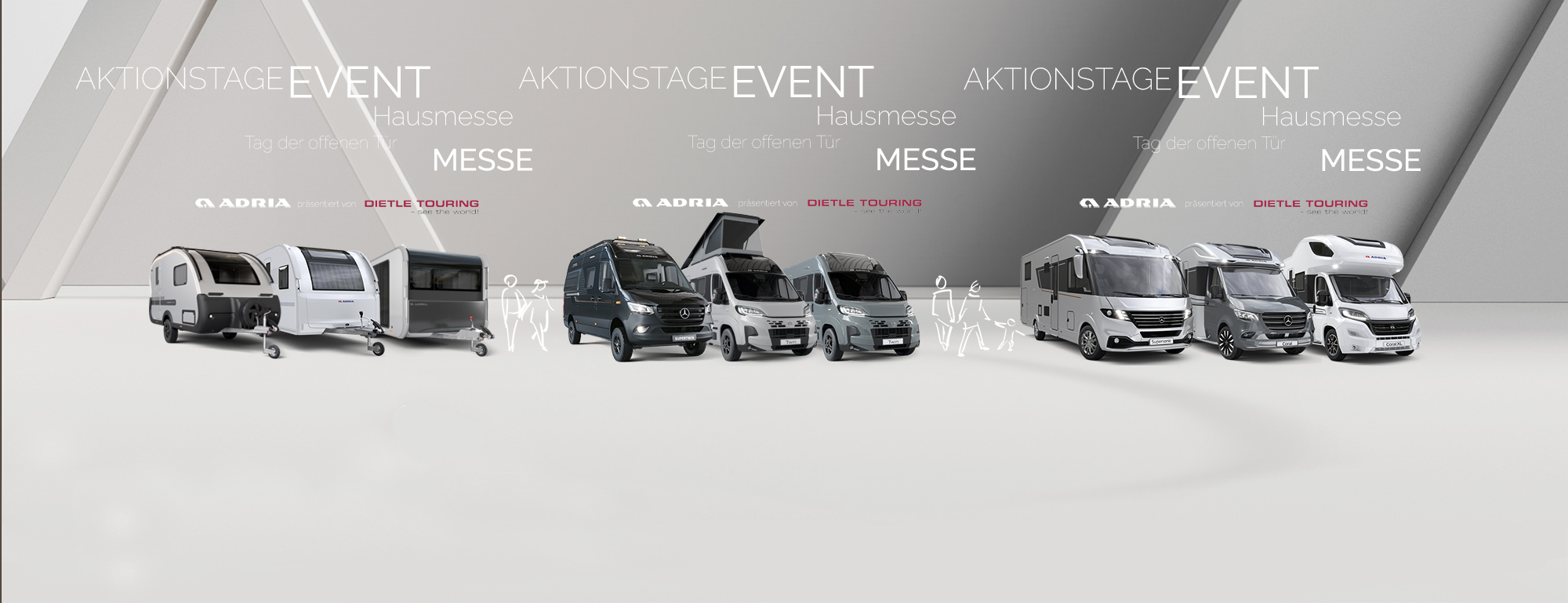 Der Frühling steht vor der Tür und DIETLE TOURING lädt Sie herzlich zur Frühlingsmesse 2026 ein! Kommen Sie vorbei und entdecken Sie die neusten ADRIA Campervan und Reisemobil Modelle, Ausstattungen und viele spannende Angebote. Für das leibliche Wohl ist Bestens gesorgt: mit leckeren Speisen und Getränken, die keine Wünsche offen lassen. Lassen Sie sich inspirieren und genießen Sie einen entspannten Frühlingsausflug in die Welt des mobilen Reisens!