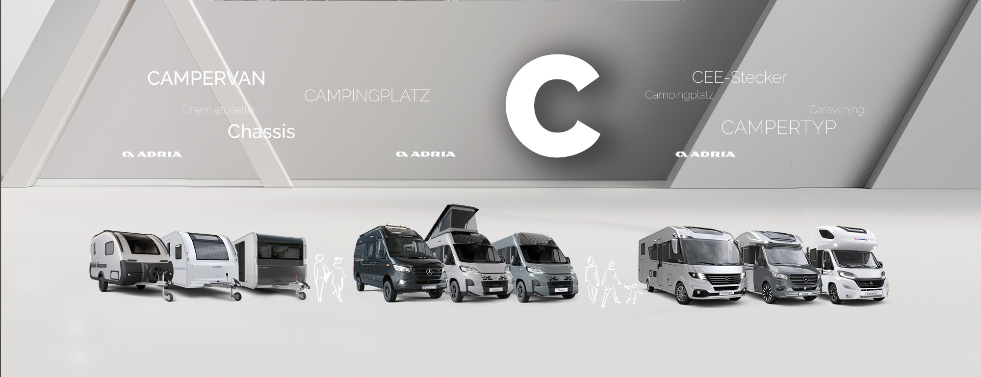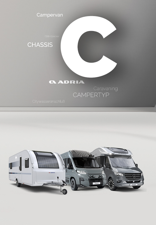 C wie Campervan! Das ADRIA Lexikon für Camping, Wohnmobile, Wohnwagen und Campervans mit wissenswerten Begriffen rund um das Thema Camping, die mit dem Buchstaben C beginnen: Von Caravaning über Campingtoilette bis hin zu CEE-Stecker und Chassis.