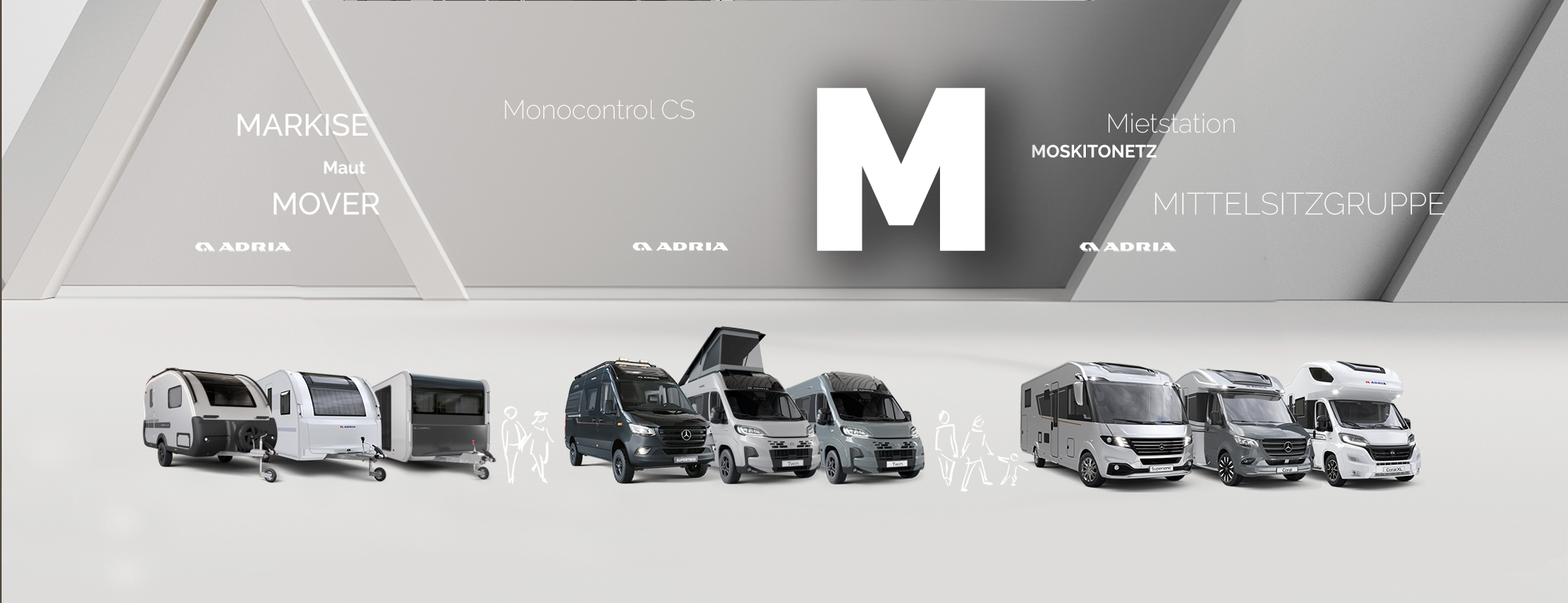 Ebenso finden sich wichtige Sicherheits- und Infrastrukturthemen wie Monocontrol CS, Motorbremse, Maut oder Müllentsorgung, die für eine gut geplante Reise mit dem Reisemobil entscheidend sind. Auch typische Wohnwagen-Technik wie der Mover oder durchdachte Grundrisslösungen wie die Mittelsitzgruppe gehören dazu.