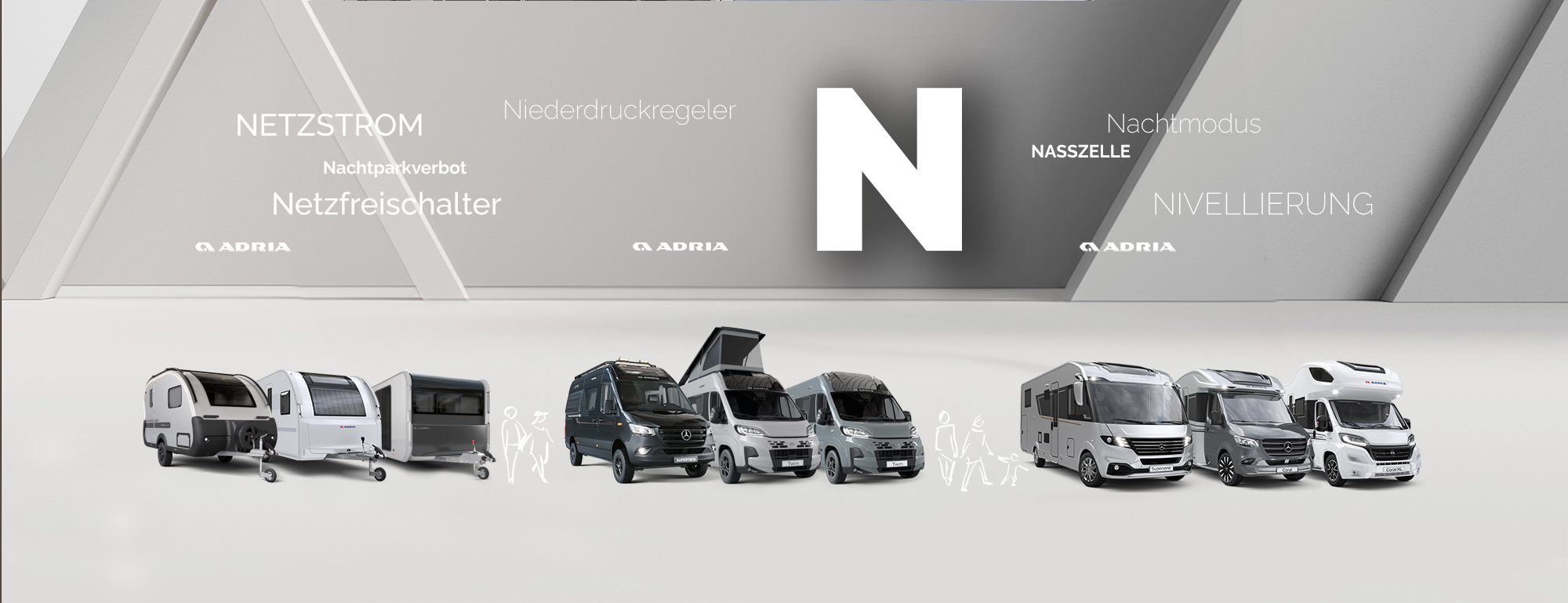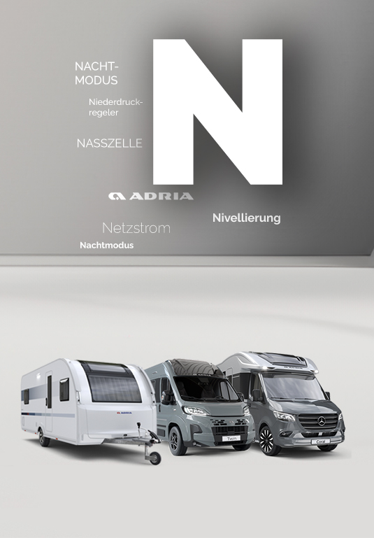 Der Buchstabe N steht im Caravaning für zahlreiche Begriffe, die im Alltag mit Wohnmobil, Campervan oder Wohnwagen regelmäßig eine Rolle spielen. Dazu zählen technische Themen wie Nivellierung oder Niederdruckregler, sicherheitsrelevante Funktionen wie Notbremsassistent, ebenso wie Komfortbereiche rund um Nasszelle, Nachtmodus oder Netzanschluss auf dem Campingplatz.