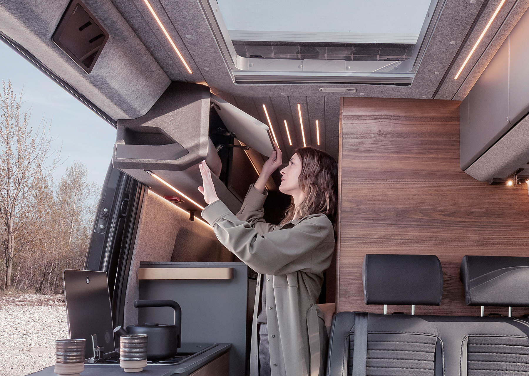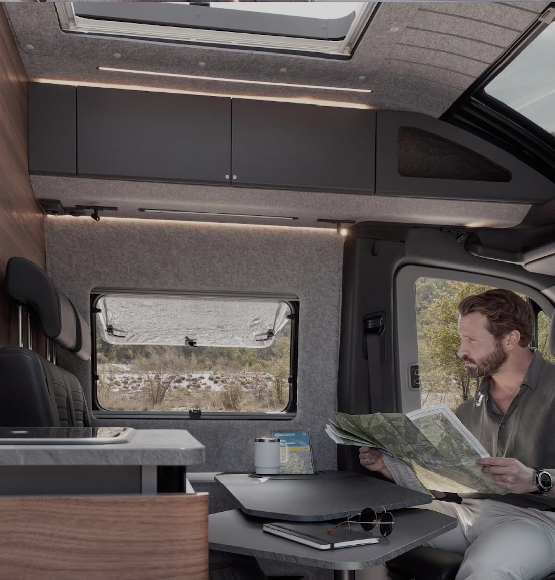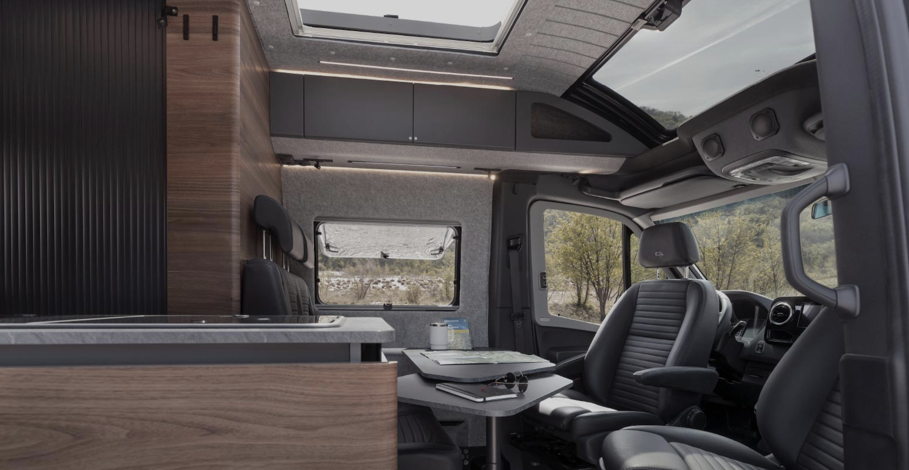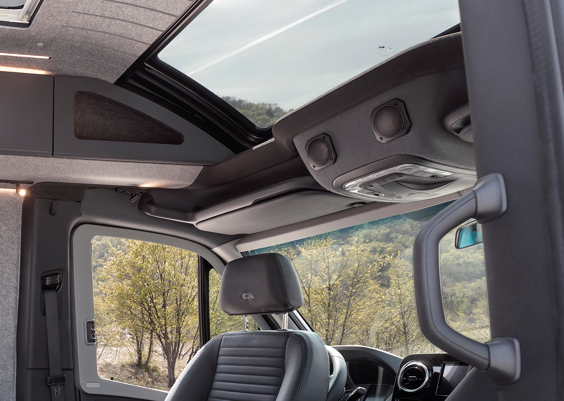 Weit entfernt von gewöhnlichen Campervans, perfekt abgestimmt auf den Mercedes-Benz Sprinter und seine permanente Allrad Performance. Ein direkteres Lenkgefühl, hervorragende Manövrierbarkeit, zusätzliche Sicherheitsfeatures und die Fähigkeit, auch raues Gelände und unebenes Terrain mühelos zu meistern.