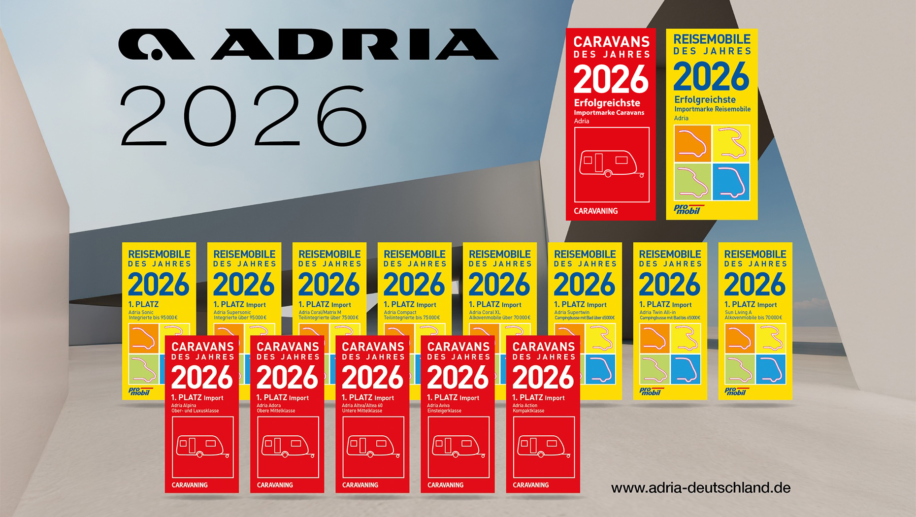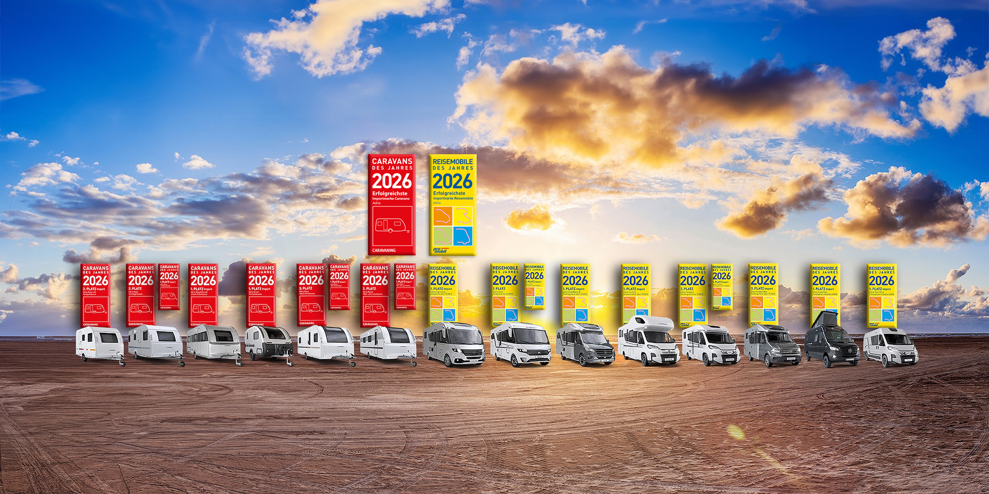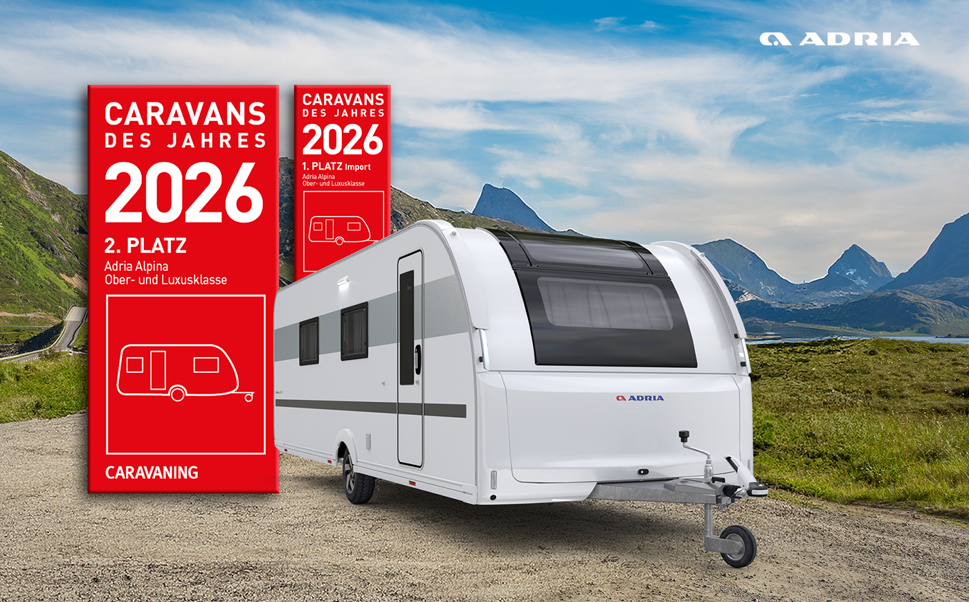 Die Leserinnen und Leser der Fachmagazine promobil und CARAVANING haben abgestimmt und ADRIA zählt auch bei der Leserwahl 2026 zu den großen Gewinnern. Insgesamt wurden 19 Auszeichnungen über 12 unterschiedliche Baureihen vergeben. Zudem wird ADRIA als "Erfolgreichste Importmarke" sowohl für Reisemobile ink. Campervans sowie Caravans ausgezeichnet. Ein Ergebnis, das die breite Modellpalette von ADRIA ebenso widerspiegelt wie das Vertrauen der Caravaning-Community.