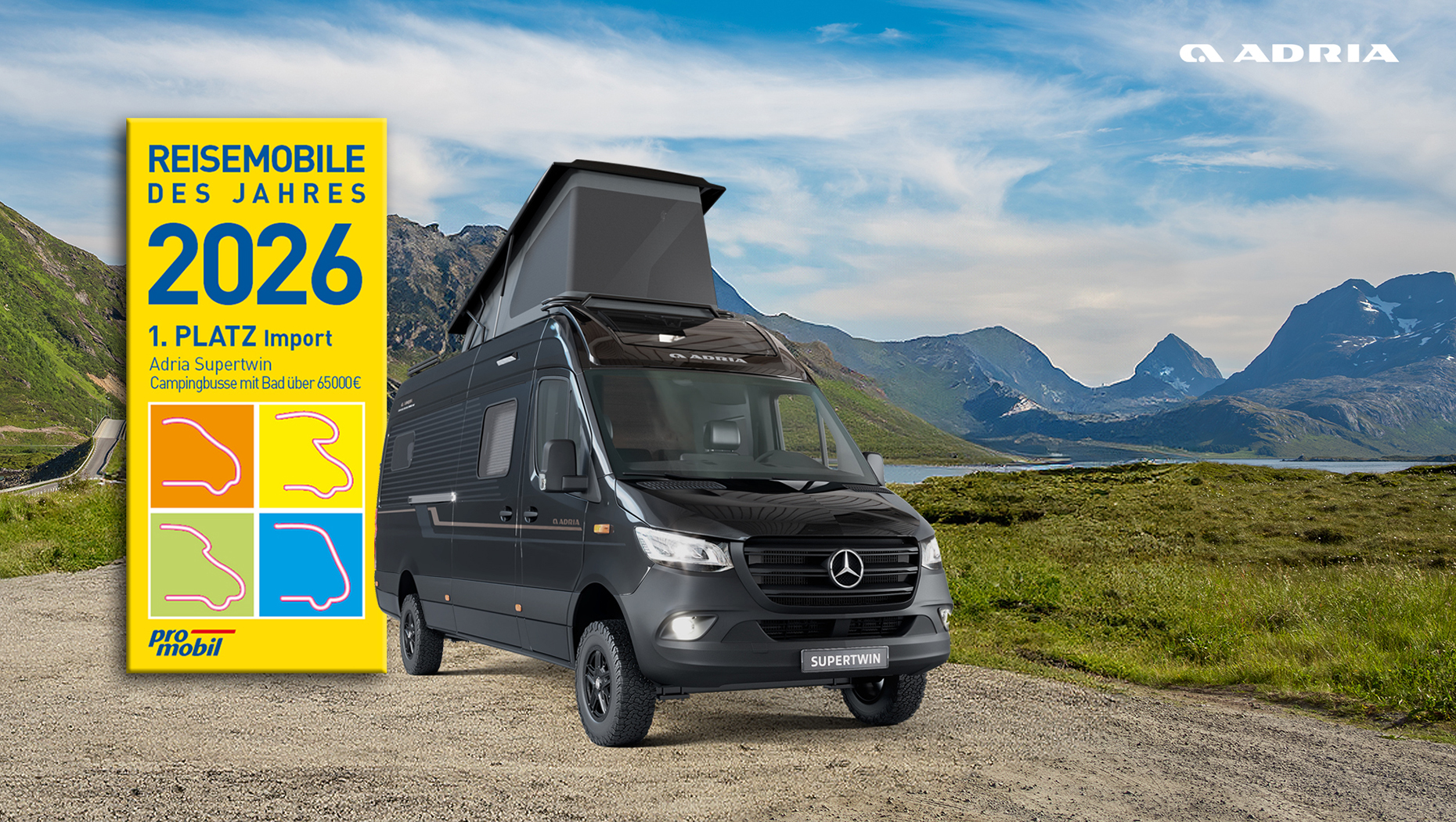 Unser Dank gilt allen Leserinnen und Lesern von promobil und CARAVANING, die mit ihren Stimmen zu diesem starken Ergebnis beigetragen haben. Ihre Rückmeldungen und ihr Vertrauen sind für uns Bestätigung und Motivation zugleich, unsere Fahrzeuge kontinuierlich weiterzuentwickeln und das Reiseerlebnis mit ADRIA immer wieder neu zu denken.