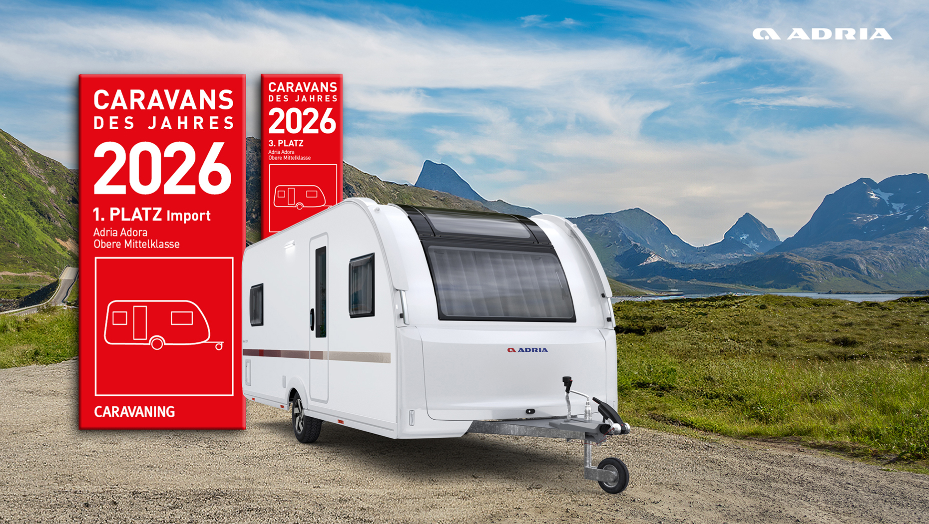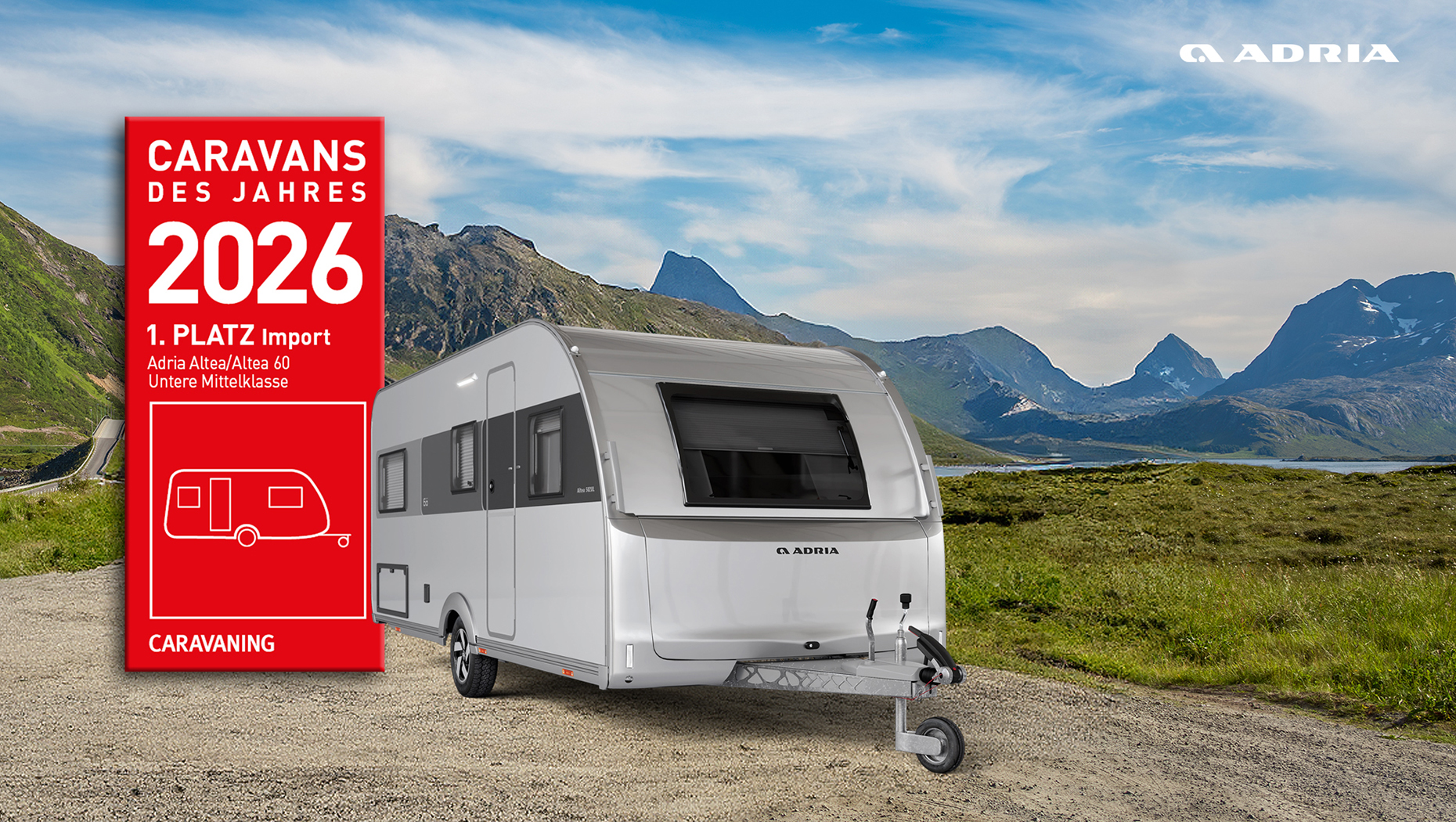 ADRIA ALPINA belegte den 2. Platz insgesamt in der Ober- und Luxusklasse und wird hier als bester Wohnwagen 2026 in der Importwertung ausgezeichnet.